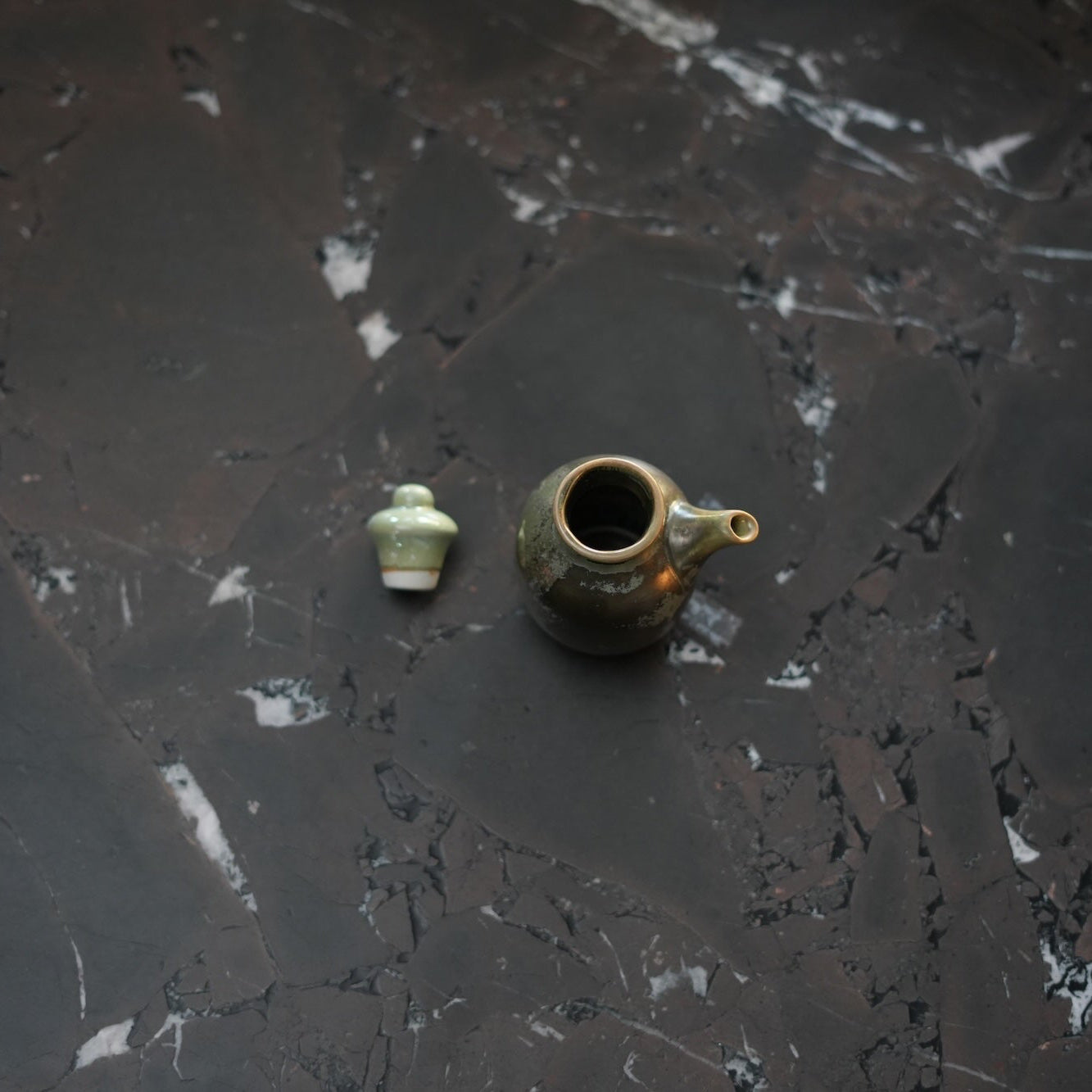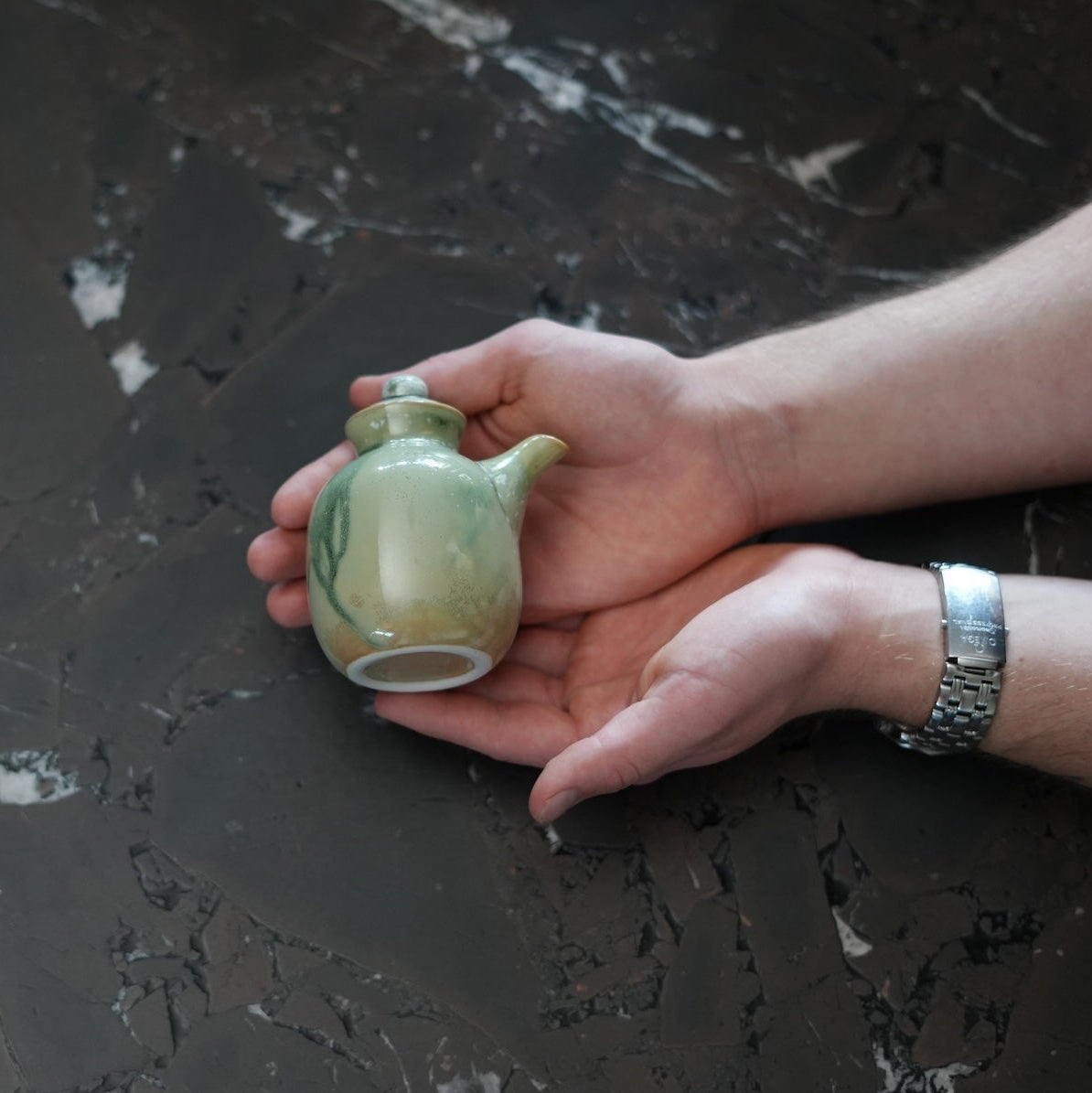 Gefertigt in kleinen asiatischen Werkstätten. Jedes Stück wird gegossen, von Hand nachbearbeitet und bei 1280 °C gebrannt. Glasur und Hitze machen jedes Kännchen einzigartig.