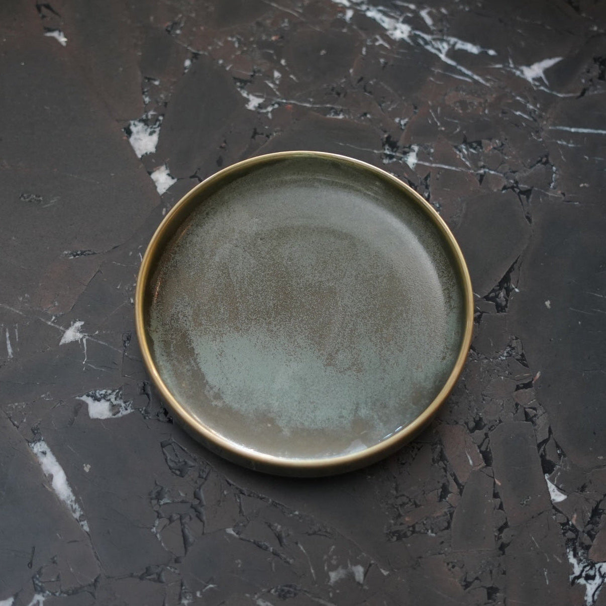 Grünnuancen wie Moos im Regenwald. Aoki steht für Natur, Wachstum und Ruhe. Jeder Teller ein Unikat, geprägt vom Feuer.